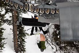 I witnessed a guy fall off a chairlift once. It wasn't over a big canyon or onto a fence, it was right where you load onto the chair. The chair swung back then forward, and the momentum sent him flying off the chair, leading with his face into the open air just beyond the loading platform. Fitness was not this man's particular obsession, and he must have fallen at least eight feet before landing on his chest. I wondered if he'd walk away and looked around to see if ski patrol was en route. The line began to pile up behind us. Instead of turning around and getting onto the next chair, the man pulled himself straight up off the ground and into the chair without his skis on. He did not turn around once to look at the crowd. A liftie had to climb down and get his skis, and then try to put them back on him while he sat on the chair. He was so high that the liftie was trying to push the skis on while standing on his tiptoes and shoving upward. It took about 5 minutes, meanwhile the crowd behind him grew. To the liftie's credit, he never once acted like a jerk or embarrassed the guy -- just fought his skis back on and effectively used the humiliation to avoid any possible lawsuits against the ski resort.